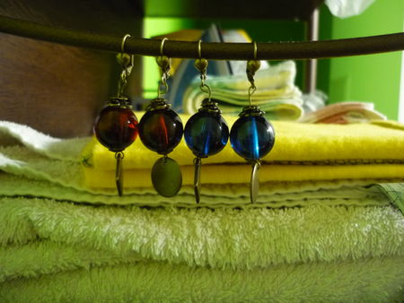 Alors, il y a du Noël là-dedans ? Mais bien sûr, elles ne vous rappellent rien, ces boucles d’oreilles ? L’ouvrière a craqué sur ces perles translucides parce qu’elles lui faisaient indéniablement penser aux boules qu’on accroche sur le sapin (je sais, c’est pas forcément évident…).