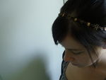Du coup, ni une ni deux, l’ouvrière a ressorti un bon petit projet vieux de… novembre ou décembre, je ne sais plus (ahem, une fois n’est pas coutume…), un joli headband pour décorer la grossepetite tête de l’ouvrière, idéal pour les beaux jours. En fait, il est commencé depuis un moment, mais l’ouvrière a repoussé l’échéance parce qu’elle ne connaissait pas la taille exacte de son tour de crâne (et puis, elle voulait éviter de faire du gâchis, c’est encore la crise…).