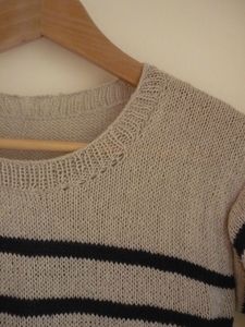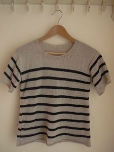 Vous devez penser que je dois être un peu maso de choisir sans cesse des modèles qui se tricotent avec de si petites aiguilles, non c’est vrai pourquoi ? Bonne question ! Pour le coup, ça devait être le seul modèle potable de marinière que j’avais sous la main, adapté à l’été (et à l’automne maintenant), et pour lequel j’avais un chouette fil.